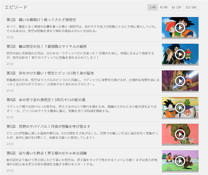 第1話の「闘いの幕開け!帰ってきたぞ孫悟空」から、最終回(第159話)「もっと強く!悟空の夢は終わらない!!」まで、全てが見放題となります。