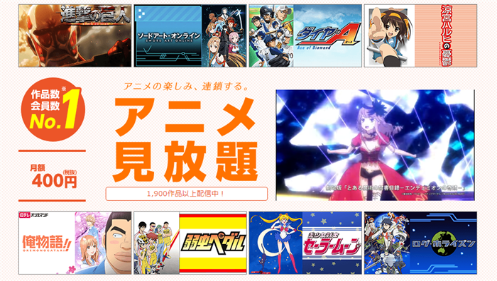 アニメだけで¥400円って思うかもしれませんが、その分ラインナップはかなり豊富です。