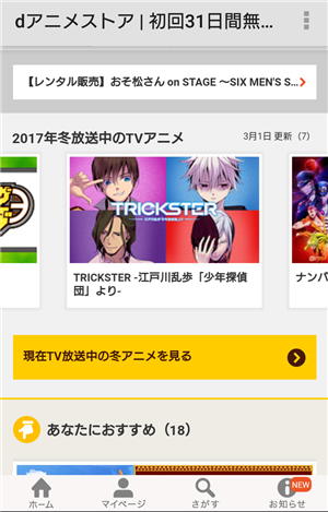 アニメに関しては、これ以上は無いのではと思うほどの「dアニメストア」。