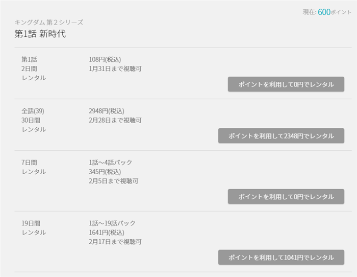 キングダム第2シリーズはポイントが必要
