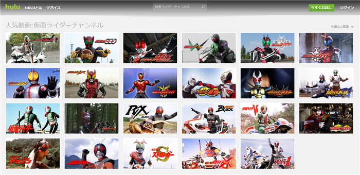 「Hulu」では、これらの仮面ライダーを一挙に集めた「仮面ライダーチャンネル」というのがあります。