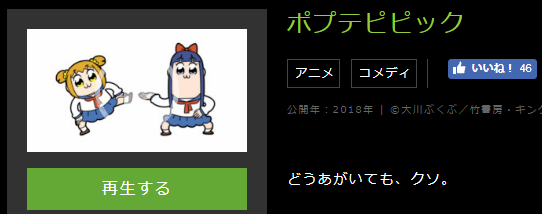 なので、今回に限っては「ポプテピピック」を見終わった後のことを考えつつ利用した方がイイですよ。