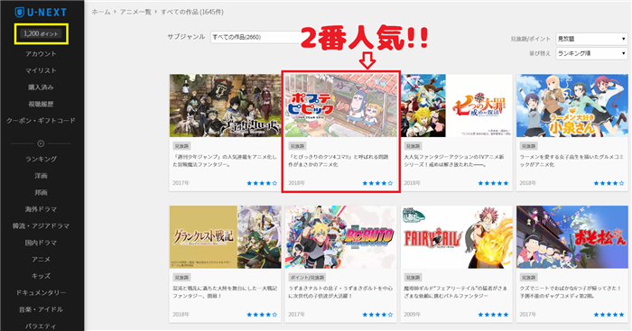 当然のように、私の愛用している「U-NEXT」のアニメジャンルでも、人気上位に来てるわけですよ。