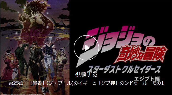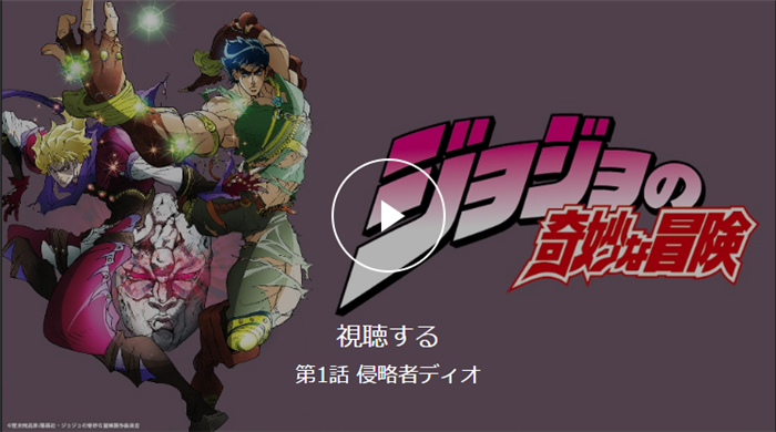 スマホはもちろん、PCやタブレットでいつでも「ジョジョの奇妙な冒険」のアニメが見れちゃうのです。