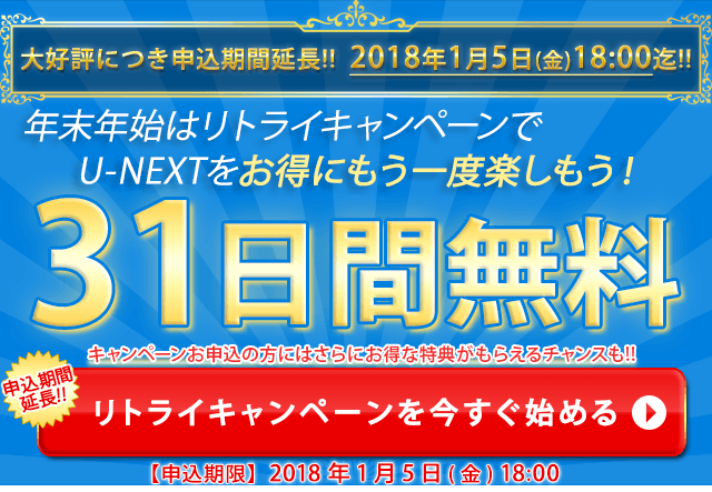 意外と知らない人も多いのですが、「U-NEXT」の無料登録終了後に「リトライキャンペーン」ってものがあるんです。
