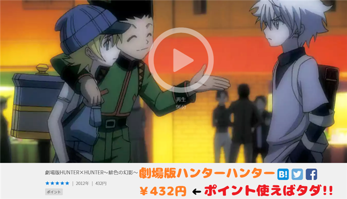 「dTV」を使うか「U-NEXT」を使うか?もしくはスルーするかはお任せしますが、「ハンターハンター」をタダで見るにはこの方法がベストだと思います。