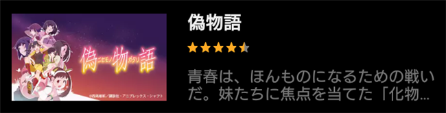 「物語シリーズ」は「U-NEXT」での評価も高いですし、観て損はない作品だと思いますよ♪