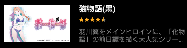 なんと「化物語」の前日を描いた作品「猫物語(黒)」も観る事ができます。もちろん見放題に含まれています!